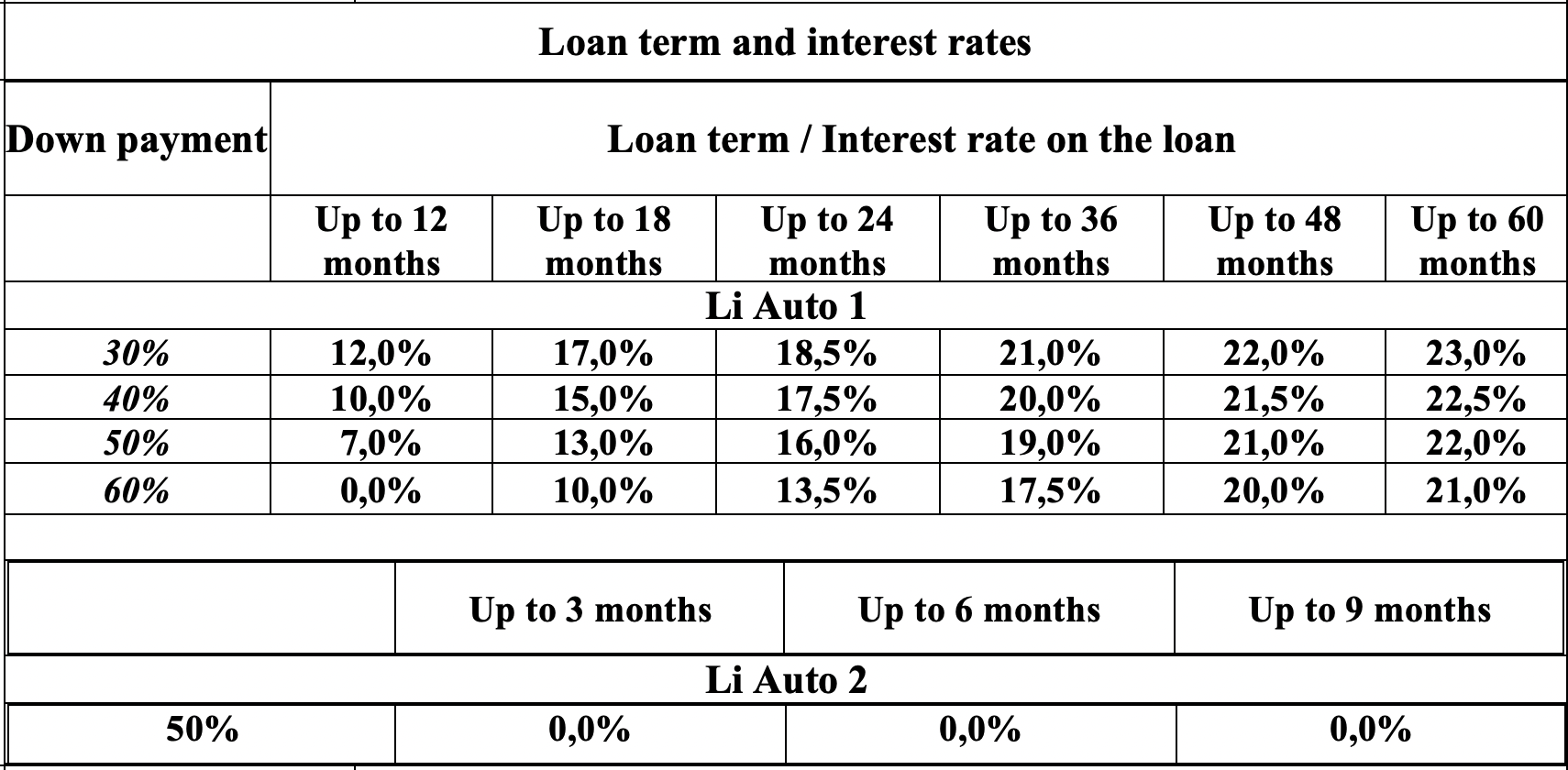Auto loan for the purchase of Lixiang vehicles manufactured by Li Auto on the primary market.