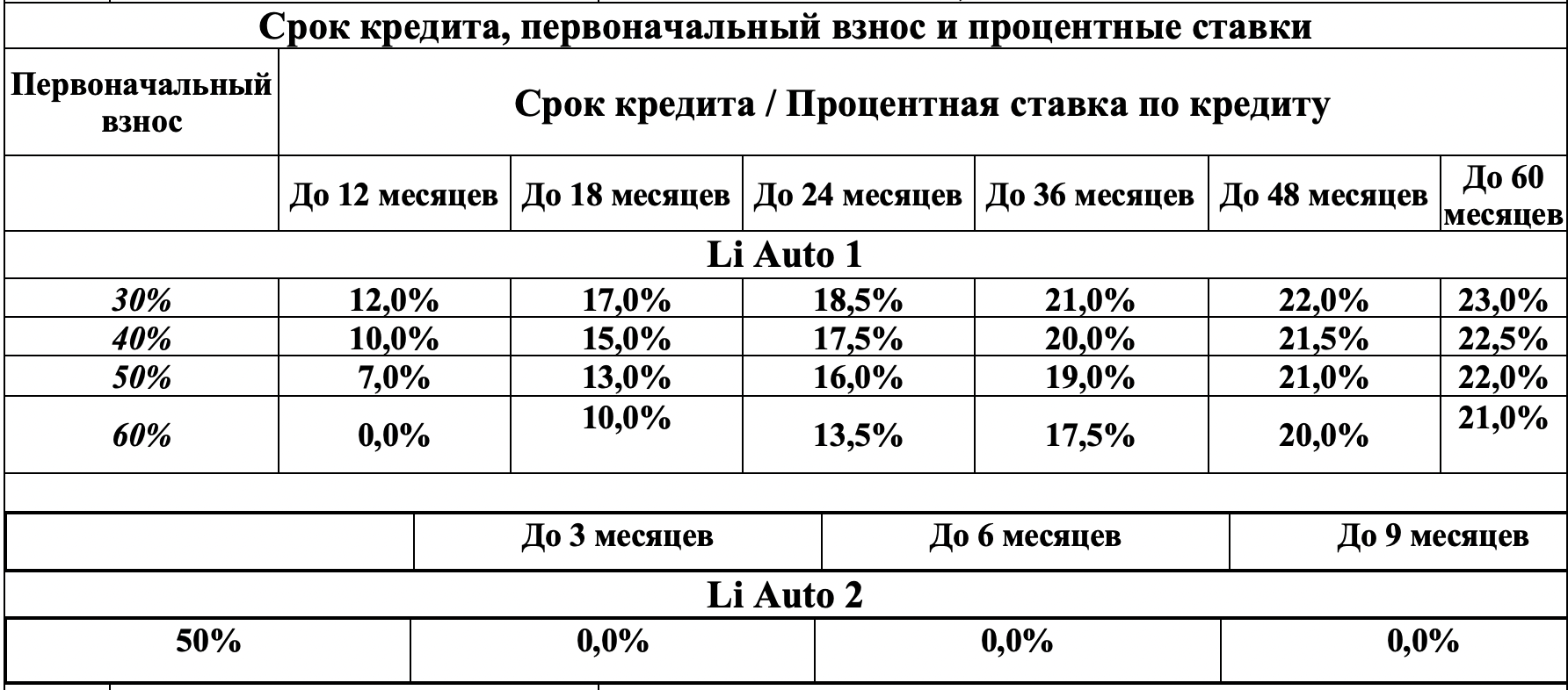 | Цель кредита | Автокредит для приобретения автотранспортных средств Lixiang, произведённых компанией Li Auto, на первичном рынке. |