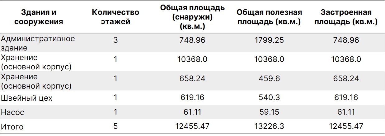 | Name of the property: | Administrative and auxiliary buildings and facilities |
