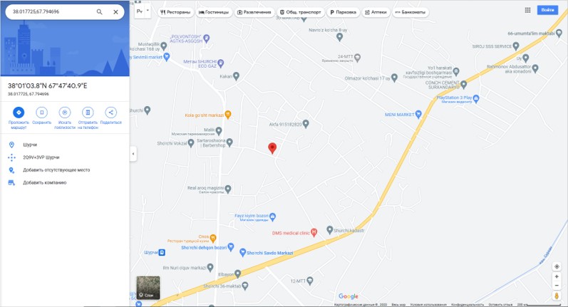 | Location | Surkhandarya region, Oltinsoy district, Beshbola Pakhlavon neighborhood, Farovon street, 38/A-house |