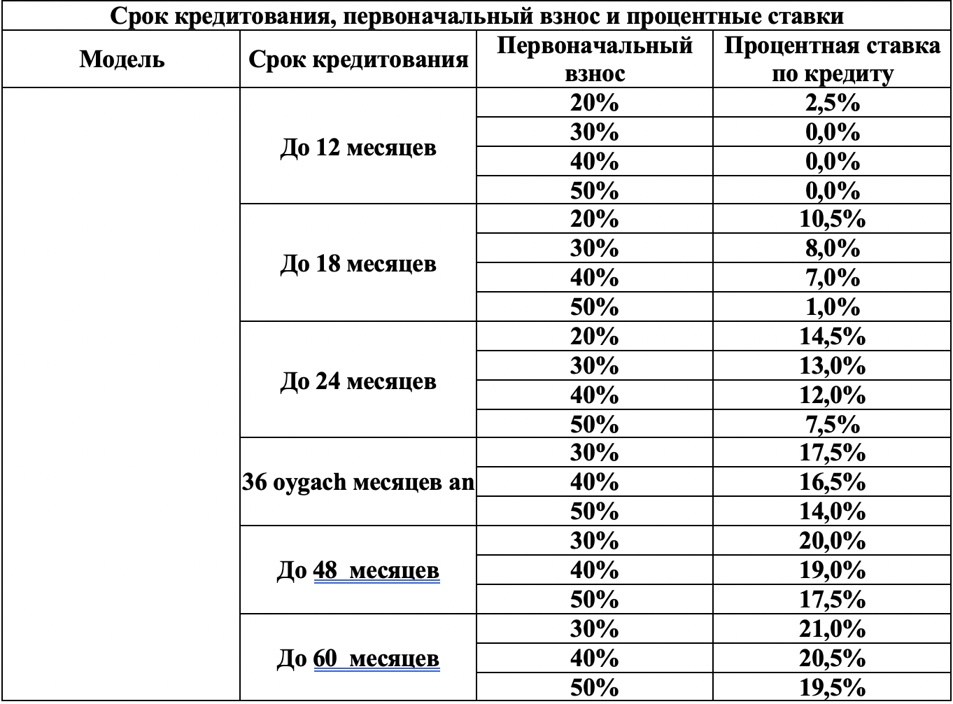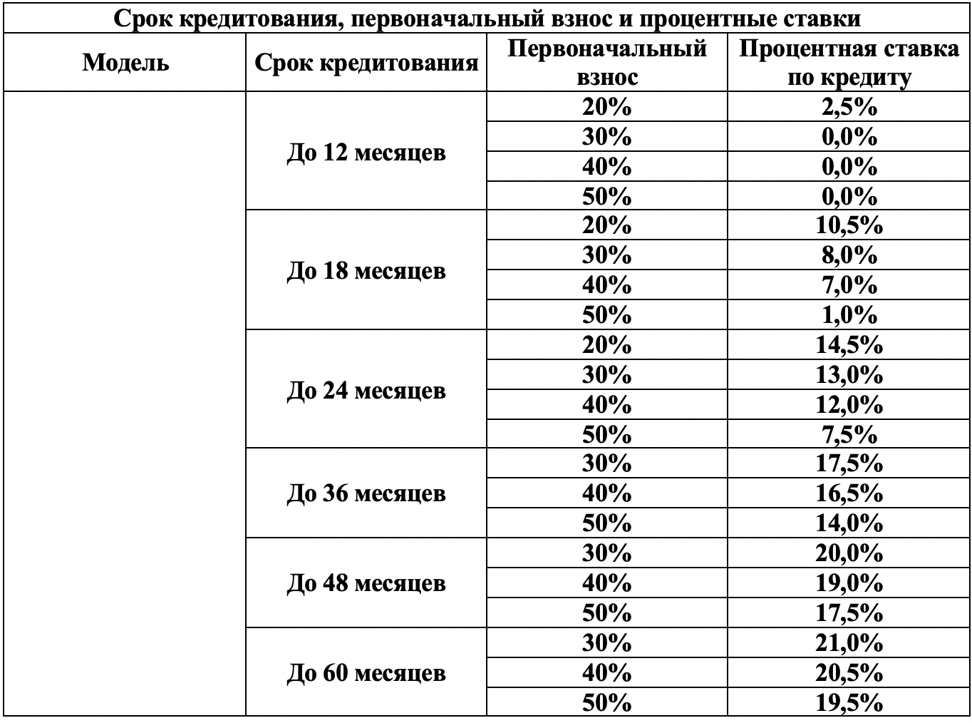 | Срок кредитования | До 60 (шестидесяти) месяцев |